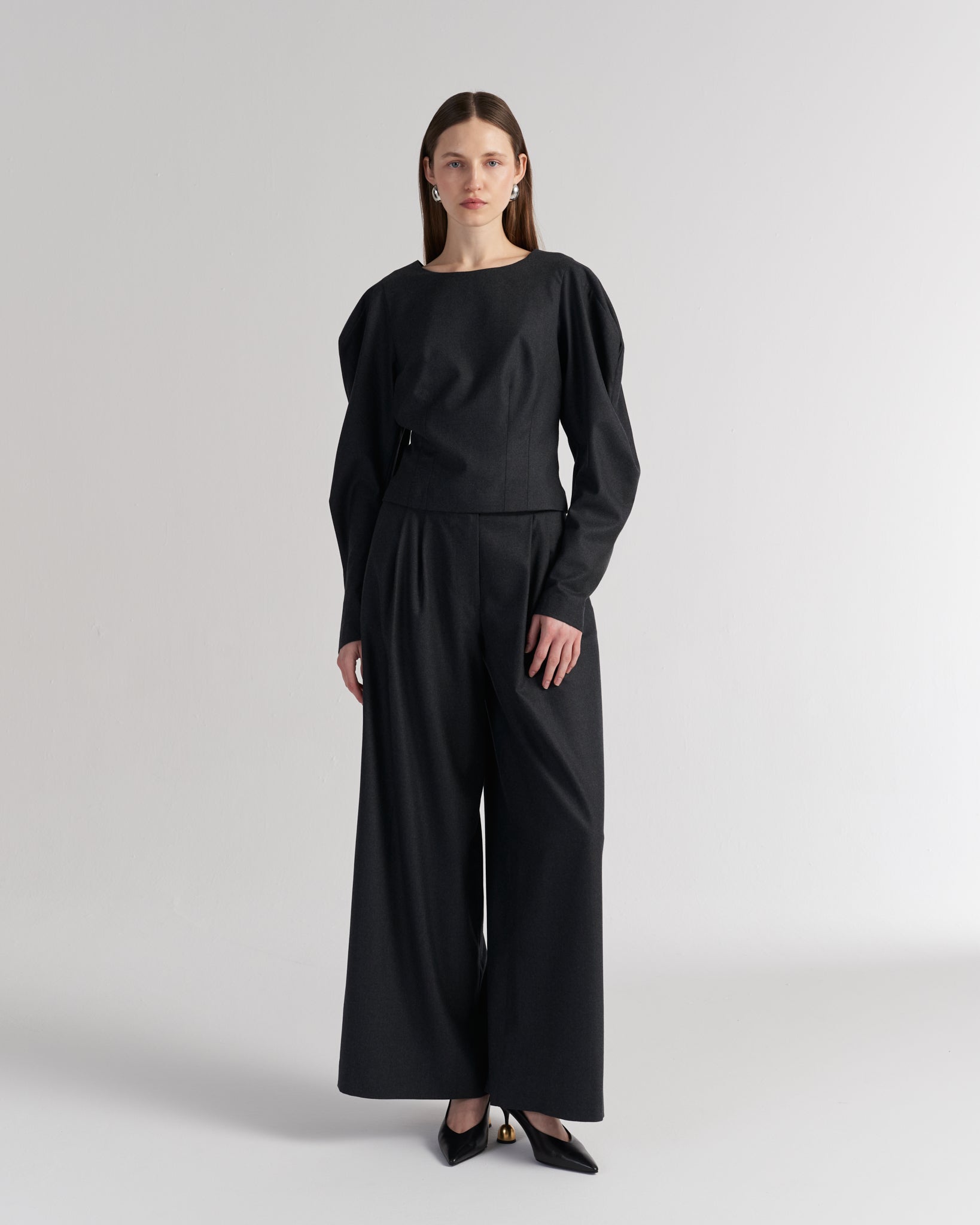 Bleuet Blouse – Elegante Wollbluse mit halbrundem Ausschnitt & taillierter Silhouette