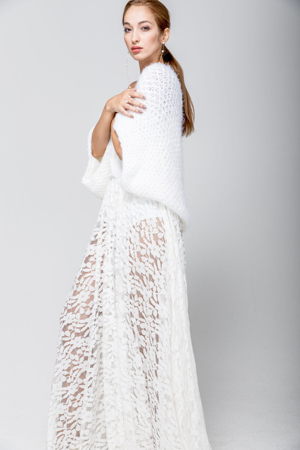 Dieser elegante oversized Braut-Bolero ist die perfekte Ergänzung für jedes Brautoutfit. Mit seiner kuscheligen und weichen Beschaffenheit verleiht er dem Look eine zarte Note. Der Bolero zeichnet sich durch seinen lockeren, großzügigen Schnitt aus, der ihn besonders komfortabel und modisch macht.