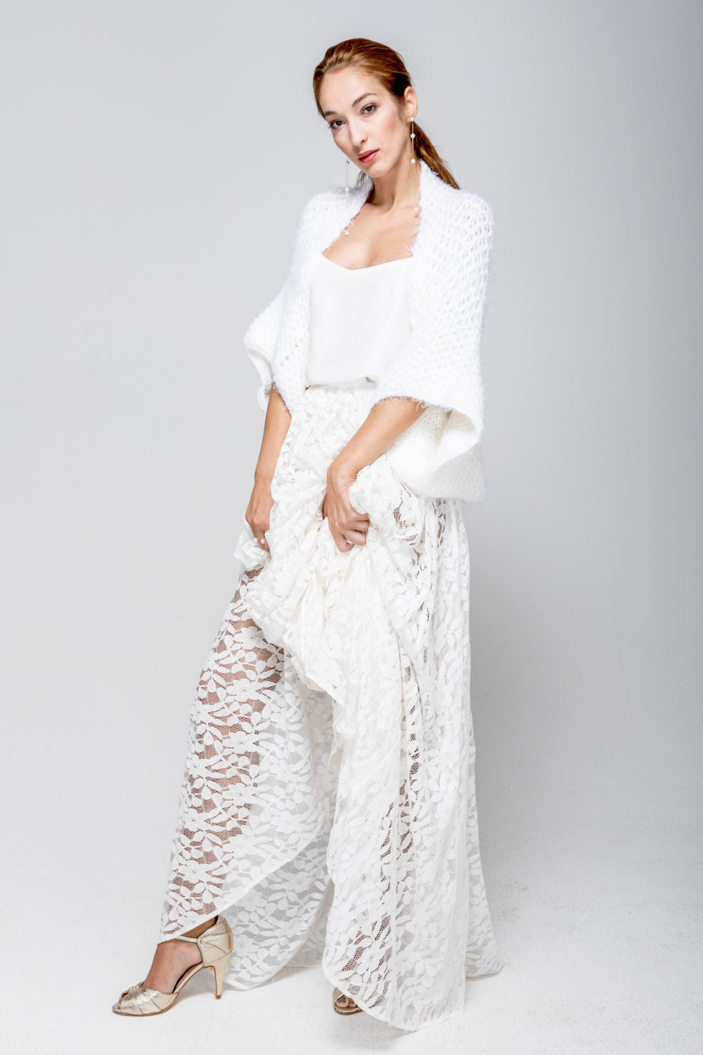 Besonders hervorzuheben ist, dass der Bolero aus hochwertiger Merinowolle handgefertigt wurde. Das luxuriöse Material bietet nicht nur ein weiches und angenehmes Tragegefühl, sondern sorgt auch für optimale Wärme und Atmungsaktivität – perfekt für kühle Hochzeitsnächte.