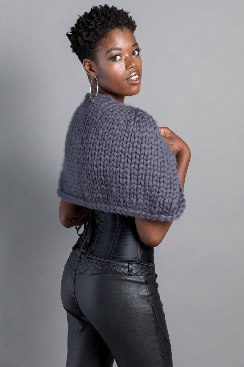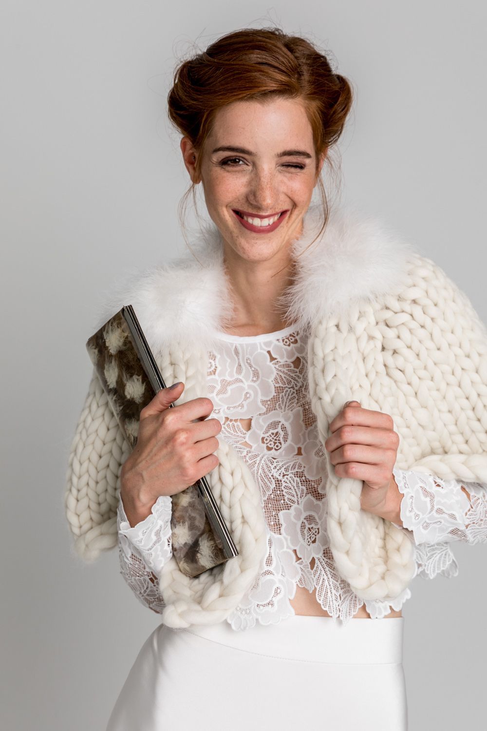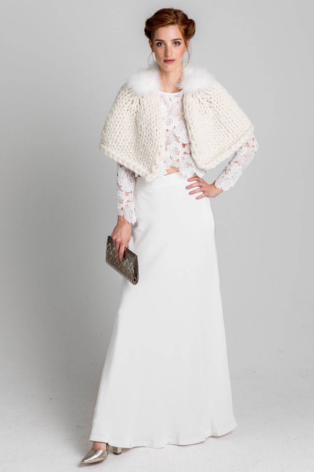 Dieses elegante, handgestrickte Braut-Cape aus hochwertiger, 100% biologischer Wolle vereint Luxus und Komfort.